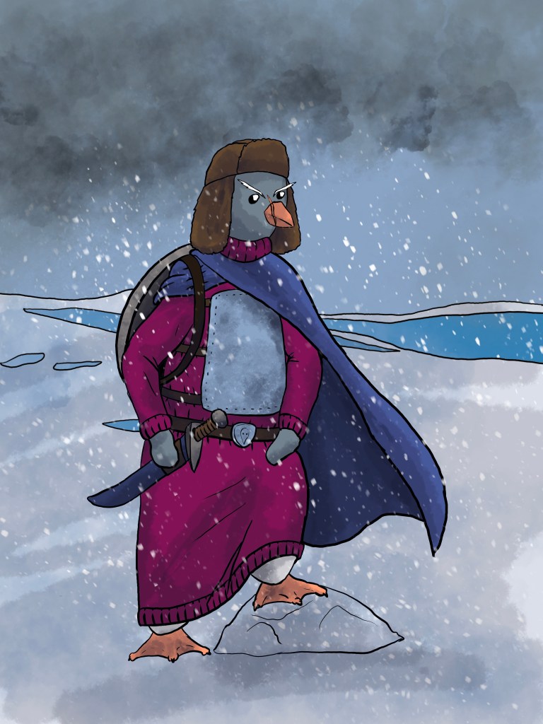 Ìsleif, an idealistic penguin, lives within an ancient, crumbling edifice – the Rookery. The world beyond is an icy desolation. Her father Jan, died in the search for a new home, yet his selfless teachings still guide her. When the Rookery collapses Ìsleif shepherds her kin into the Great Whiteness, where her compassionate ideals war against the trials of a merciless world.
